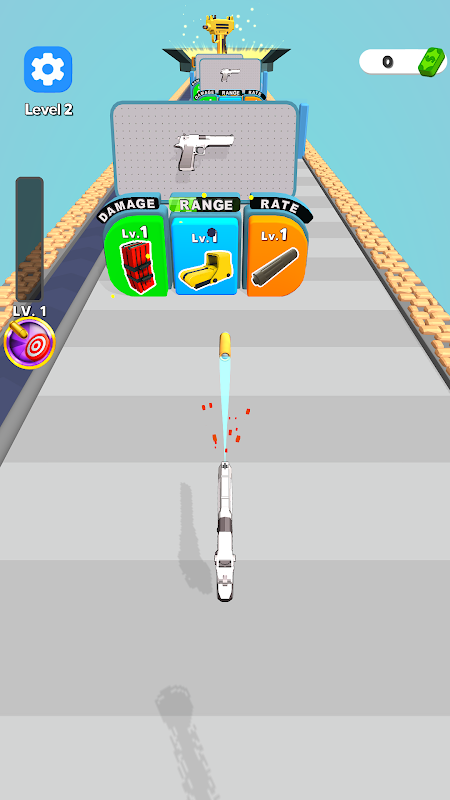 -Erreiche die Ziellinie, um neue Waffen zu entdecken! Die Leiste im Spiel dient dazu, deine freigeschalteten Fähigkeits- und Funktionskarten zu verbessern. Denken Sie daran, je mehr Sie aufrüsten, desto mächtiger werden Ihre Waffen.