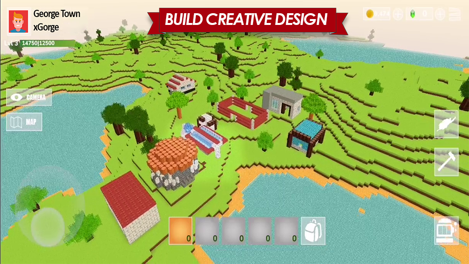 Build your world, use your own creativity to build or choose pre-designed structures with blue prints.