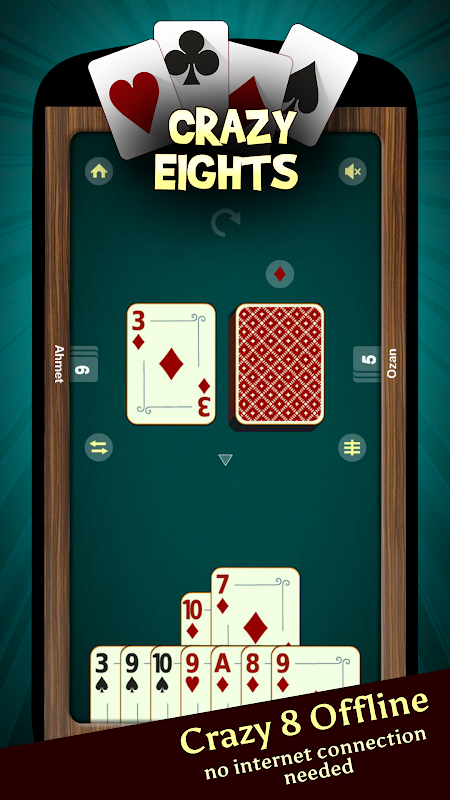 Play the Best offline Crazy Eights for android phones and tablets. It is FREE.
