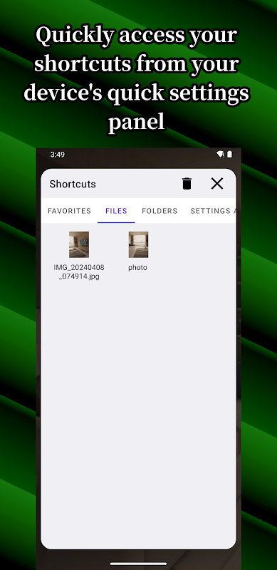 Greifen Sie mit einem Fingertipp auf alles Wichtige auf Ihrem Gerät zu. Schluss mit dem lästigen Suchen in Ordnern oder den Einstellungen! Erstellen Sie personalisierte Verknüpfungen für Ihre wichtigsten Daten und platzieren Sie diese direkt auf Ihrem Startbildschirm für den Sofortzugriff. Alternativ können Sie sie in einem übersichtlichen Fenster zusammenfassen, das Sie über die Schnelleinstellungen erreichen und so Ihren Startbildschirm aufgeräumt halten (Android 7 und höher erforderlich).