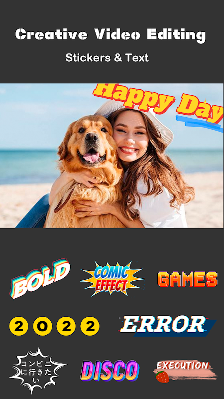 - Use pre-made fonts and animated texts & customize with strokes, shadows, and colors.
