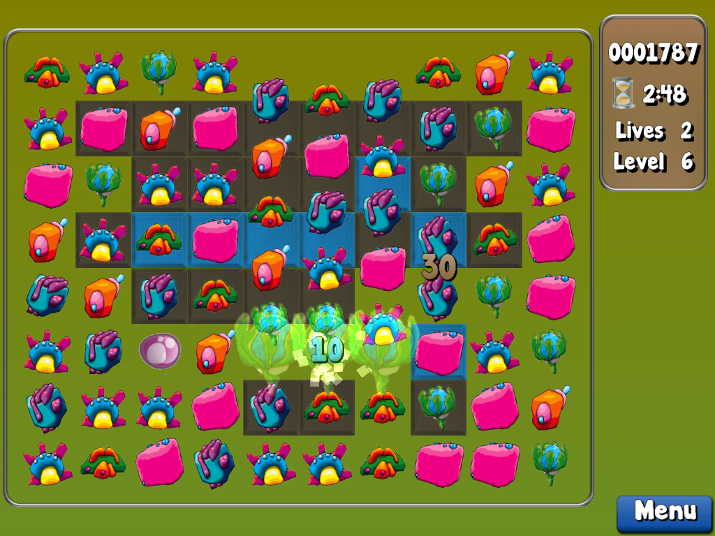 Bilde Übereinstimmungen, indem du 3 oder mehr Kreaturen derselben Art nebeneinander in horizontaler oder vertikaler Anordnung platzierst. Um jedes Level zu beenden, musst du alle Kacheln unter den Kreaturen zerbrechen. Wenn die Zeit abläuft, verlierst du ein Leben.