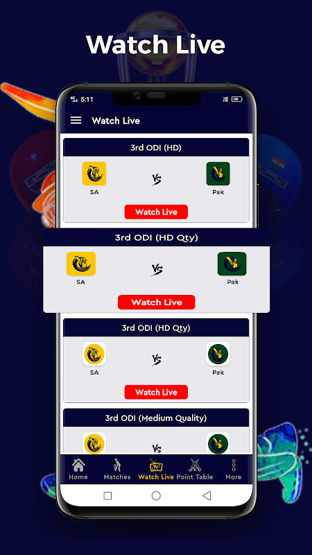 🏏 Watch your favourite Cricket team's live matches on your phone