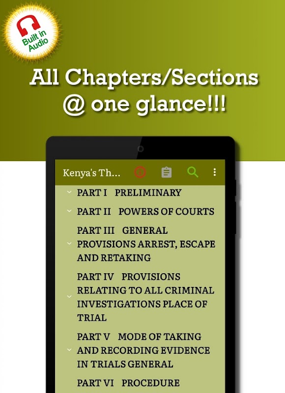 Eine gute Möglichkeit, sich über die kenianische Strafprozessordnung zu informieren. Diese App ist sehr nützlich und einfach zu bedienen, als hätten Sie sie immer dabei.