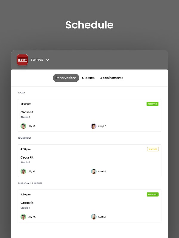 Kursreservierungen und Kontoverwaltung für Mitglieder von TENFIVE