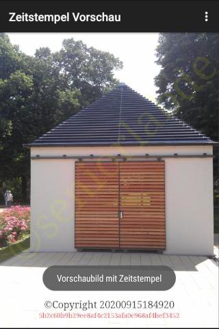Du kannst die mit Zeitstempel versehenen Bilder auf SDCart speichern oder via Email zu privaten oder geschäftlichen Partnern senden (Zeitstempel Vorschau Menü).