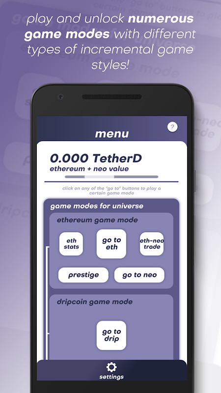 Ein Idle-/Clicker-Spiel, das auf den Kryptowährungen Ethereum und Neo mit einigen zusätzlichen Münzen basiert.