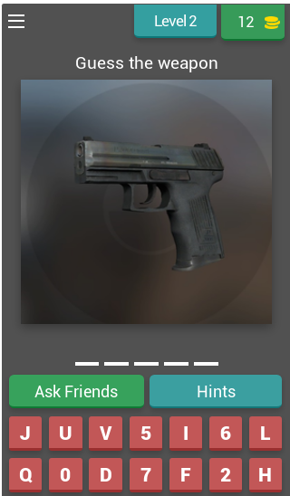 -Each level is made from one picture of one weapon from the well known game, Counter Strike: Global Offensive.