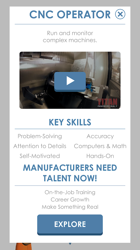 Finde heraus, ob du das nötige räumliche Vorstellungsvermögen für gefragte Berufe wie Maschinist, CNC-Maschinenbediener, Schweißer und Techniker hast. Wenn du gut genug spielst, werden dir echte Karrieremöglichkeiten in diesen Bereichen aufgezeigt.