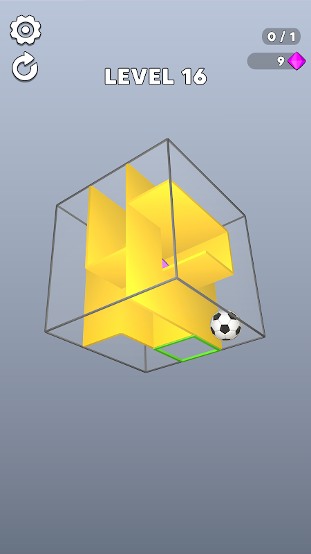 Drehen Sie den Würfel, sodass die Kugel durch das Loch entweicht