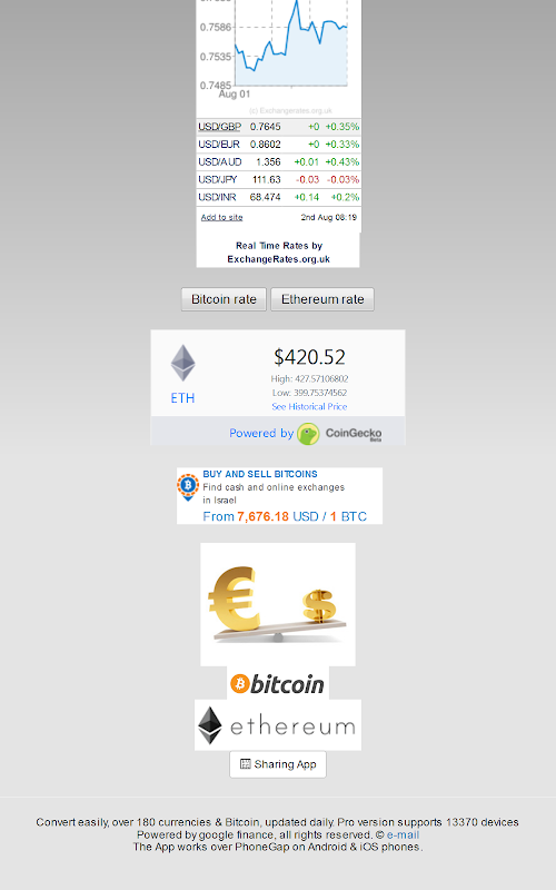 Währungen auf Reisen einfach umrechnen, [USD, EURO, GBP, ILS, 180+ Bitcoin]