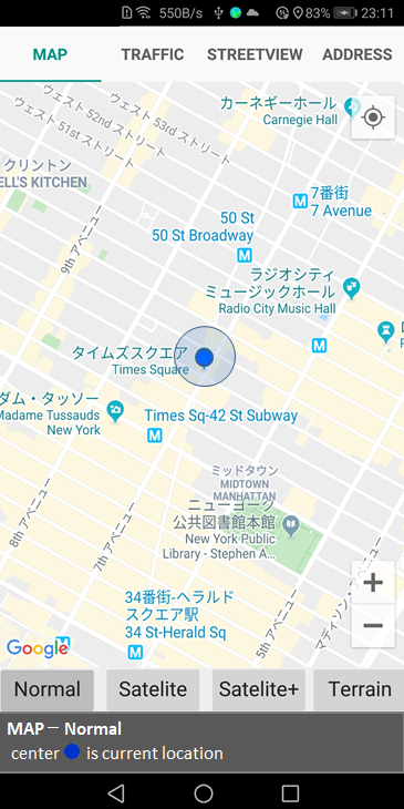 Display the current location map and address.