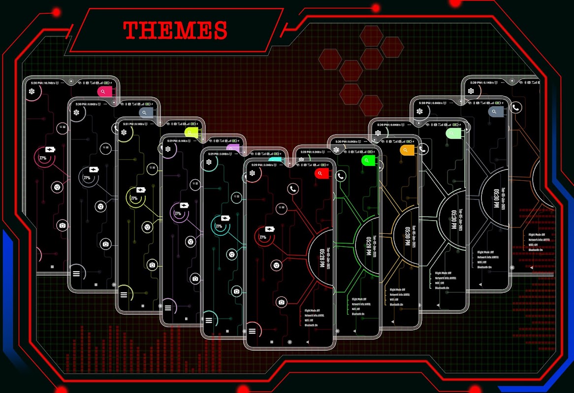 Hitech-Hintergrundbild, App-Sperre, Apps ausblenden, Farbthemen, Ordner, Tastatur, Widget