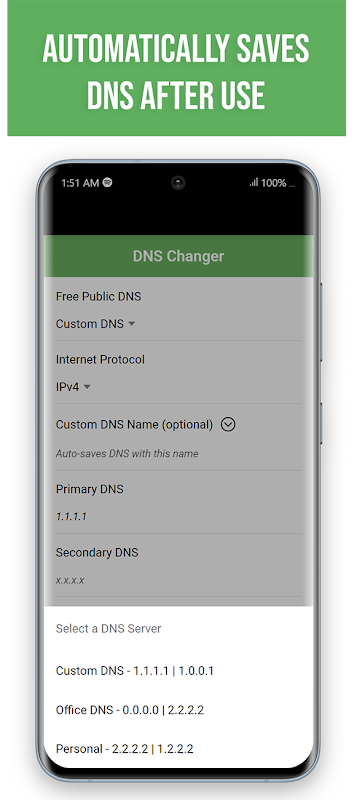 Custom DNS ist ein benutzerfreundlicher DNS-Wechsler, der sowohl IPv4 als auch IPv6 unterstützt. Es funktioniert sowohl in WLAN als auch in Mobilfunknetzen und Sie müssen Ihr Telefon nicht rooten.