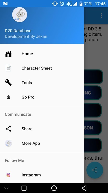 Diese APP ist eine Datenbank mit verschiedenen Artikel von DnD