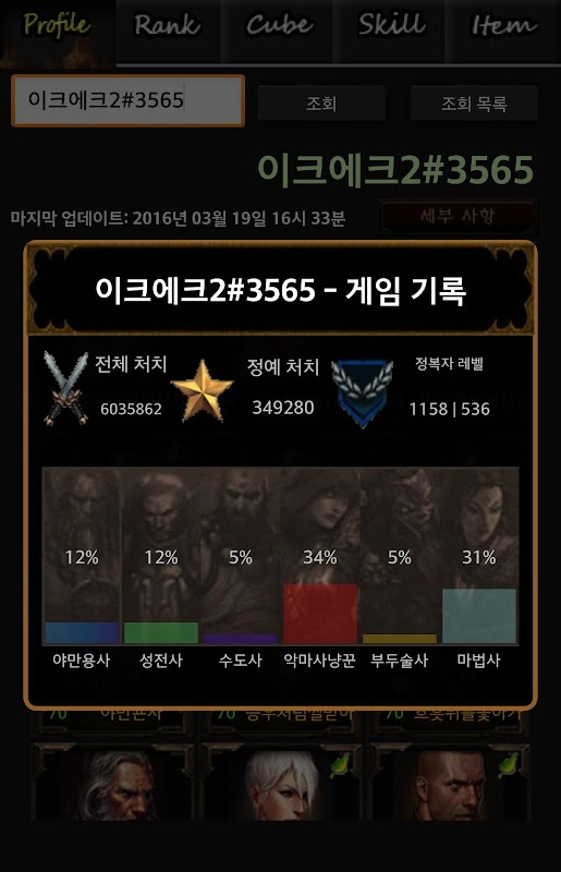 Diablo3 디아블로3 프로필 아이템 스킬 랭킹 진정실 정보