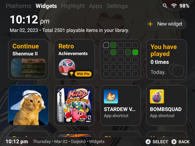 Daijishō ist ein Retro-Launcher, mit dem Sie Ihre Retro-Spielbibliotheken verwalten können. Daijishō kümmert sich um integrierte Erfahrung, Erweiterbarkeit, ästhetische und pragmatische Benutzerfreundlichkeit, damit Sie sich auf die Spiele selbst konzentrieren können. Es wird in Zukunft kontinuierlich aktualisiert, basierend auf den Antworten der Benutzer und meiner eigenen Retro-Gaming-Erfahrung in meiner Freizeit.