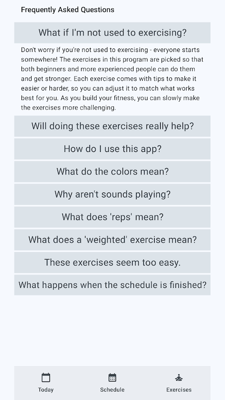 Verbessern Sie Ihre Fitness mit nur 20 Minuten pro Tag! Daily Exercise führt Sie durch wesentliche Körpergewichtsbewegungen, die echte Kraft und Flexibilität aufbauen – kein Fitnessstudio erforderlich.