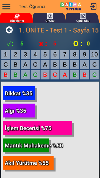 In dieser Anwendung können die Schüler die Testantworten markieren, die Ergebnisse anzeigen, auf die Antwortschlüssel zugreifen und über die von ihnen verwendeten Veröffentlichungen auf die Fragenlösungsvideos zugreifen. Die Schüler können dies tun, indem sie den QR-Code und das optische Formular über die Anwendung lesen. Die Bewertungen werden nach Fähigkeitstests angezeigt.