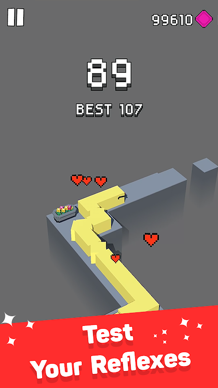 - Tap to turn the line, be careful with the zigzag, try not to fall off the ground and collect as many crystal as you can!