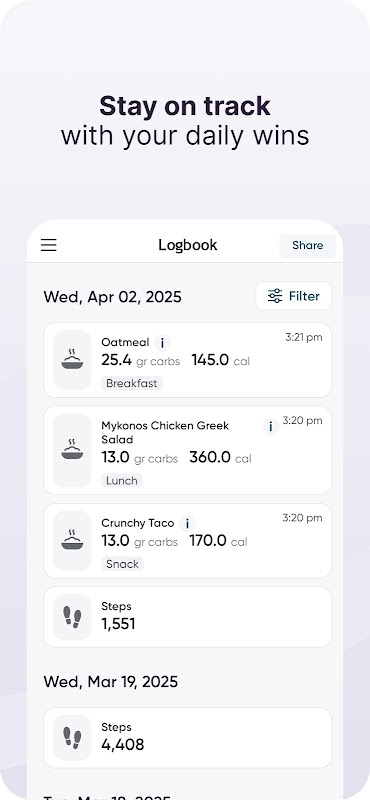 · Kohlenhydratzählung – Du erhältst Tausende Lebensmittel- und Rezeptvorschläge, die dir helfen, deine Kohlenhydrataufnahme zu überwachen. Durchsuche unsere umfangreiche Bibliothek, tippe und gib die Speise oder das Lebensmittel deiner Wahl ein. Wir kümmern uns um den Rest – ein echtes Zuckerschlecken!