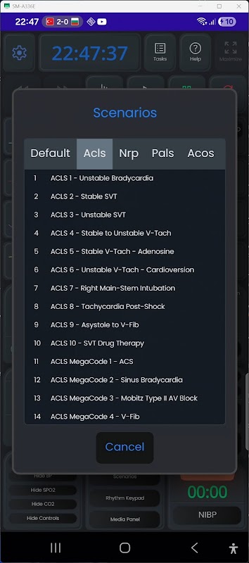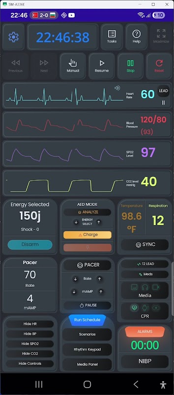Defibrillation & Schrittmachertherapie – Üben Sie synchronisierte Kardioversion, transkutane Schrittmachertherapie und Defibrillationsenergie von 1–360 J. Fügen Sie Schock-Standby-Rhythmen hinzu, die nach einer Kardioversion/einem Schock abgespielt werden.