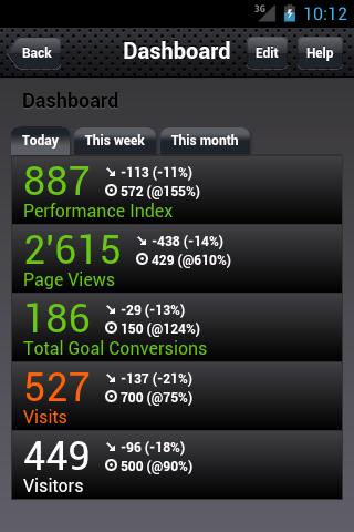 Mittels Ihres Google Analytics Kontos stellt diese App die wichtigsten Kennzahlen Ihrer Website auf einem einzelnen Dashboard dar. Nicht alle Google Analytics Metriken werden auf dem Smartphone angezeigt - aber genau jene welche aus einer Management-Sicht entscheidend und geschäftskritisch sind. Darüber hinaus berechnet die Anwendung einen 'Performance Index', der den aktuellen Leistungsgrad der Website für heute, diese Woche und diesen Monat in einer einzelnen Zahl angibt. Die Auszeichnung in Rot oder Grün zeigt sofort an, ob die Website on track ist - oder nicht.
