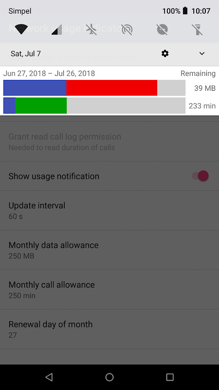 This simple to use app gives you an indication of the current data and call usage by displaying a status bar notification.