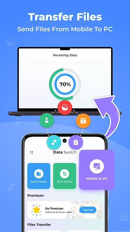 Data transfer sends all data without any error. Smart content transfer app moves the numerous data quickly within no time. Smart file transferring app allows you to shift your favorite data such as images, music, photos, contacts, and other important files with speed by availing smart mobile transfer option. Transfer my data to your device quickly with the Smart Data Transfer app.