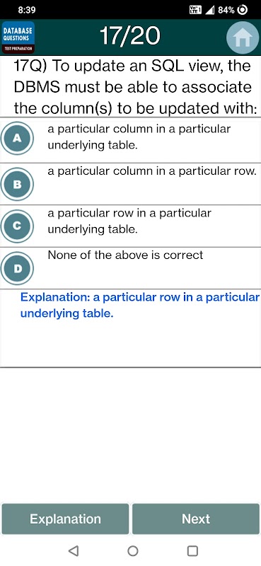 Prüfungsvorbereitung für Datenbankfragen Kostenlose App-Prüfungsvorbereitung für Ihre Datenbank-, SQL-, ODBC-, OLE DB-, ADO- und ASP-, JDBC- und MySQL-Prüfungen. Bei der Prüfung zu Datenbankfragen stehen Ihnen mehr als 1500 Multiple-Choice-Fragen für Ihren Erfolg bei der Datenbankprüfung zur Verfügung.