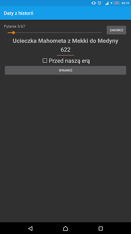 Prosta aplikacja do nauki dat z historii. Zawiera ponad 60 dat, które są podzielone na 3 grupy według trzech klas.