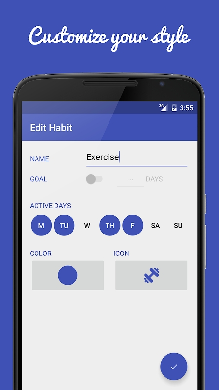 • Passen Sie Ihre Gewohnheiten und Ziele mit mehreren Optionen an und personalisieren Sie die App nach Ihren Wünschen