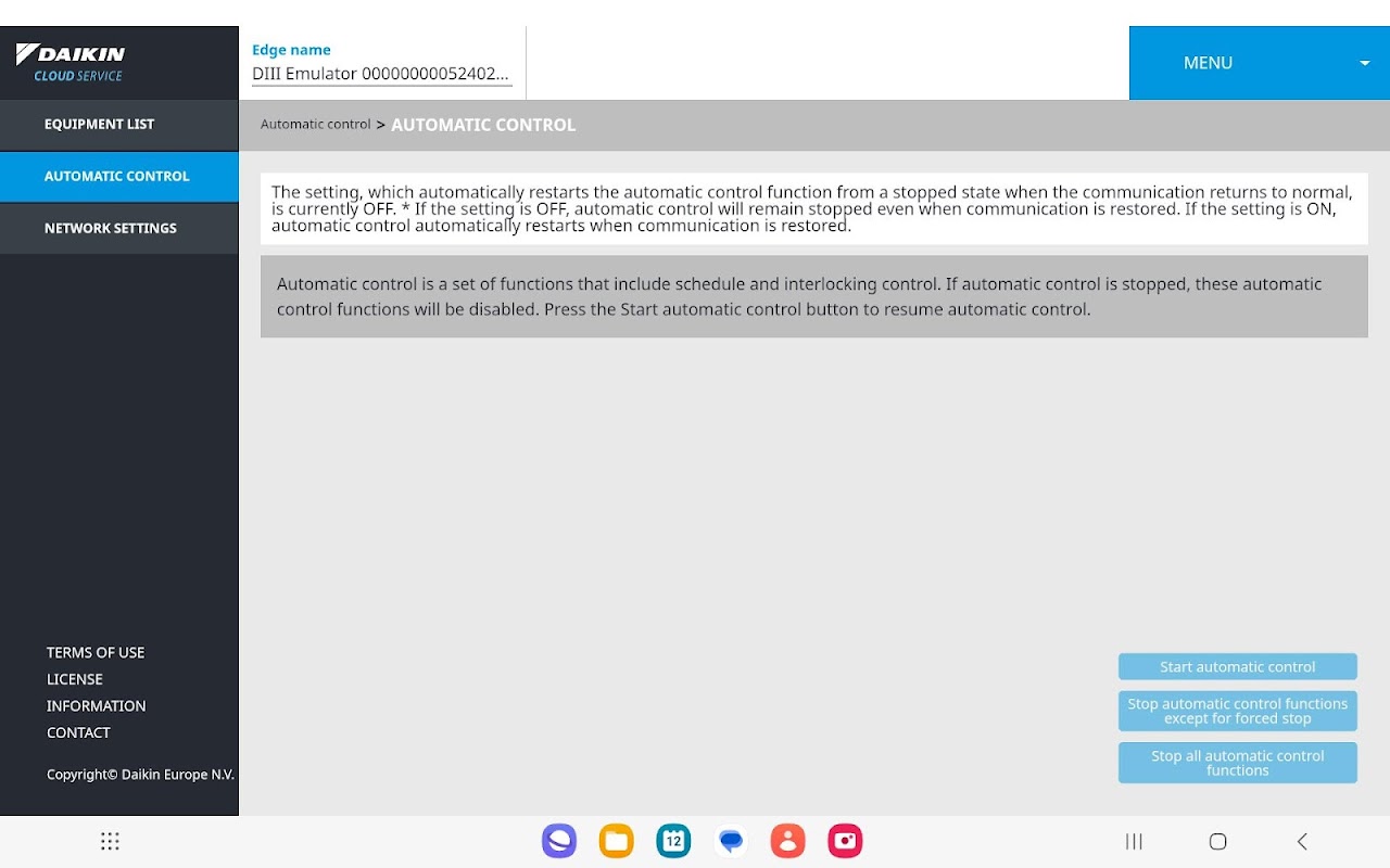 Diese Anwendung kann als Backup-Anwendung für die Daikin Cloud Plus-Plattform verwendet werden. In Ihrem lokalen Netzwerk können Sie eine Verbindung zum DC+ Edge-Controller herstellen, um grundlegende Aktionen an Ihrem Setup durchzuführen.