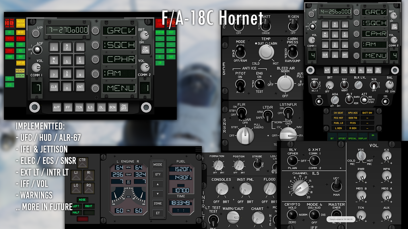 Bedienfelder (UFC / ICP / andere Bedienfelder) für DCS World. Zum Arbeiten müssen Sie das Lua-Exportskript für DCS World von hier herunterladen und installieren: