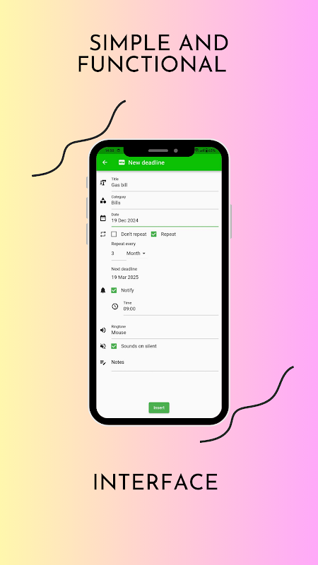 Diese App sendet Ihnen Benachrichtigungen und Alarme, um sicherzustellen, dass Sie nichts Wichtiges vergessen.