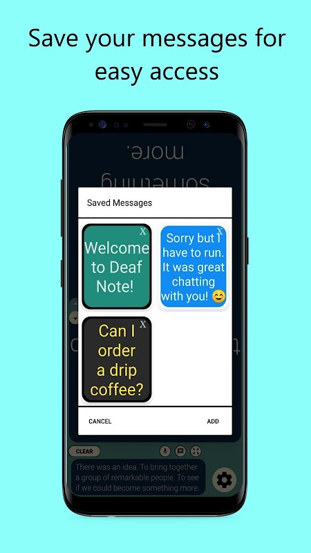 Deaf Note wurde mit der Philosophie entwickelt, eine einfache Benutzeroberfläche für die Textkommunikation mit Designanpassung bereitzustellen, und ist perfekt für den täglichen Gebrauch.