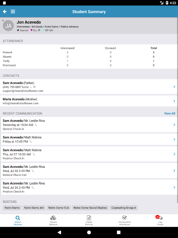 DeansList macht es einfach, nicht-akademischen Studentendaten einschließlich des Verhaltens zu erfassen, ist die Teilnahme, Hausaufgaben Abschluss, Büro Einladungen und vieles mehr, alles in einer einzigen Plattform.