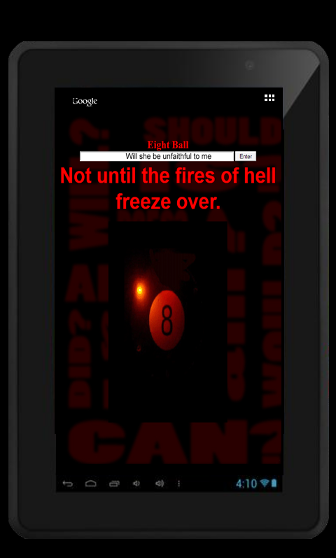 Die erste Voraussage ist immer die genauesten, so verschwenden keine Zeit sich selbst zu belügen, wenn die Magic 8 Ball gibt Ihnen eine Antwort, die Sie nicht mögen, das erste Mal