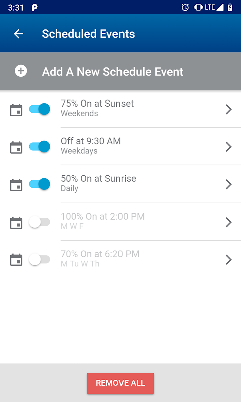 Planen Sie Ihre Lichter so ein, dass sie aus Sicherheitsgründen automatisch ein- und ausgeschaltet werden, damit Sie nie wieder in ein dunkles Haus zurückkehren. Diese App bietet die Flexibilität, tägliche Termine für Wochentage, Wochenenden oder jeden Tag zu programmieren - sogar während Ihrer Abwesenheit - und verleiht Ihrem Zuhause ein "gelebtes" Aussehen für mehr Sicherheit und Seelenfrieden. Für unbeschwertes Wohnen verfügt der Decora® Dimmer und Timer über eine astronomische Uhr, die den Standortdienst Ihres mobilen Geräts verwendet, um den Längen- und Breitengrad des Dimmers zu bestimmen. Dies ermöglicht es, dass die praktische Funktion "bei Sonnenuntergang und bei Sonnenaufgang" sich automatisch täglich an die Zeit vor Ort anpasst, damit die Beleuchtung immer im Einklang mit der Natur ist.