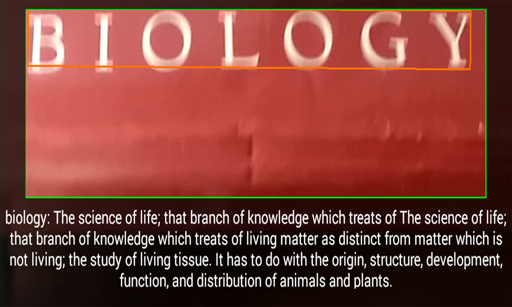 Defining is a groundbreaking application that uses image processing to instantly define any word you hold up to the camera!