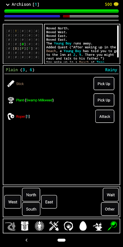 A solo indie-dev aims to bring an old-school style to modern day Android devices. This is accomplished with an easy to understand interface, a few iconic buttons, and several information screens. Players are empowered to navigate a proceedurally generated world full of danger and treasure.