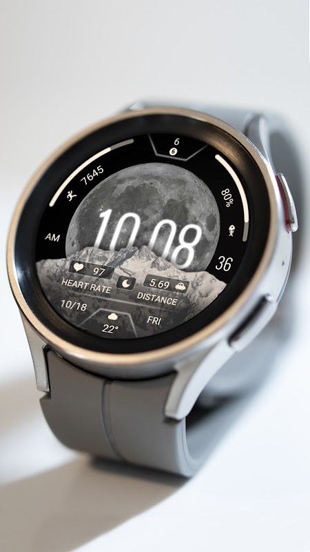 Tiefenschärfe-Mond für WearOS. Diese Zifferblätter laufen auf Wear OS 1. Oben: Benutzerdefinierte Daten, Schritte, Prozentualer Fortschritt des Schrittziels, Leistung und Prozentfortschritt 2. Zentralregion: Uhrzeit, Vormittag und Nachmittag 3. Unten: Herzfrequenz, benutzerdefinierte App, Distanz, Datum, Woche, benutzerdefinierte Daten Anpassung : Mehrere Anpassungsbereiche zur Auswahl Kompatible Geräte: Pixel Watch, Galaxy Watch 4/5/6/7 und höher sowie andere Geräte