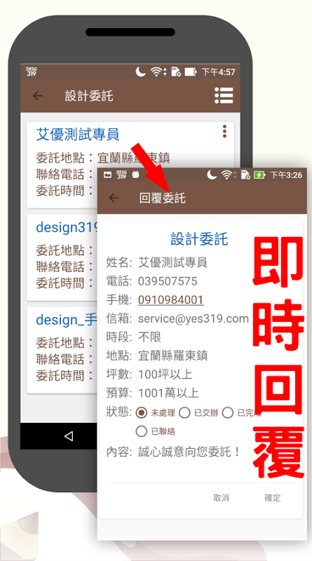 此應用程式是為現有加盟設計師客戶所設計, 提供使用手機新增 維護之功能。