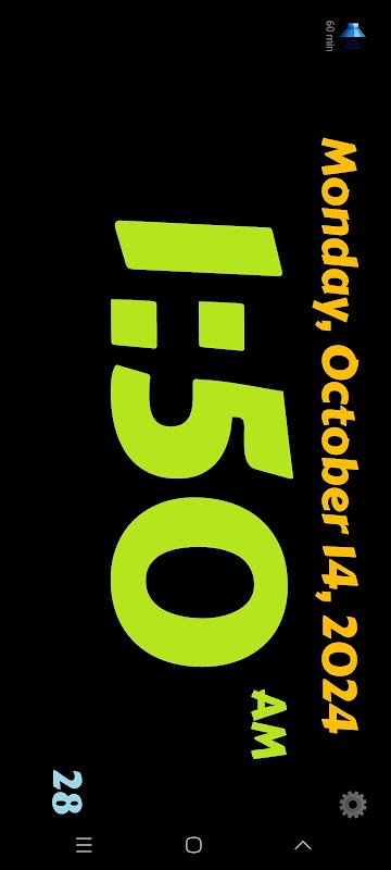 - Die Desktop-Uhr im Querformat zeigt Datum, Tag, Stunden, Minuten und Sekunden an.