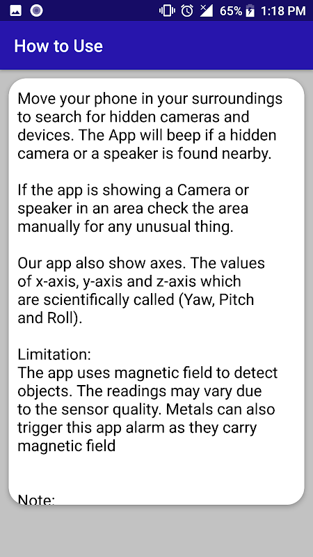 But sometimes, some type of metals depending on their length, material, temperature may exhibit same magnetic activity as that of camera. In that case app may beep. If so please look for lens on the suspect.