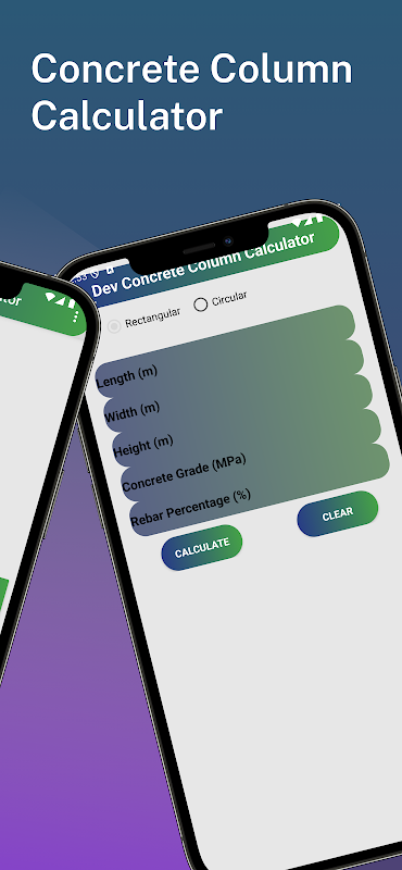 Der Dev Concrete Column Calculator ist ein umfassendes Tool zur Vereinfachung des Entwurfs und der Analyse von Stahlbetonstützen. Mit dieser App können Bauingenieure, Architekten und Baufachleute schnell wichtige Säuleneigenschaften berechnen, einschließlich Querschnittsfläche, Volumen, Materialschätzungen und geschätzte Tragfähigkeit. Durch die Bereitstellung einer benutzerfreundlichen Oberfläche und präziser Berechnungen rationalisiert diese App den Designprozess und gewährleistet die strukturelle Integrität.