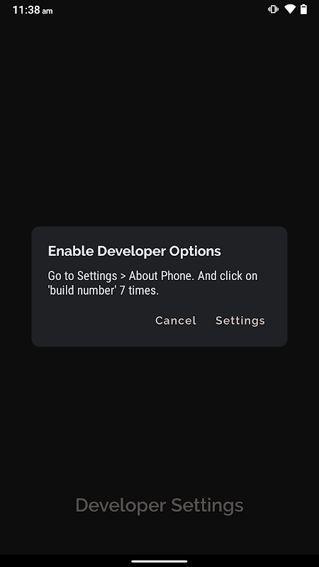 Einfache App zum Öffnen der System Developer-Einstellungen.