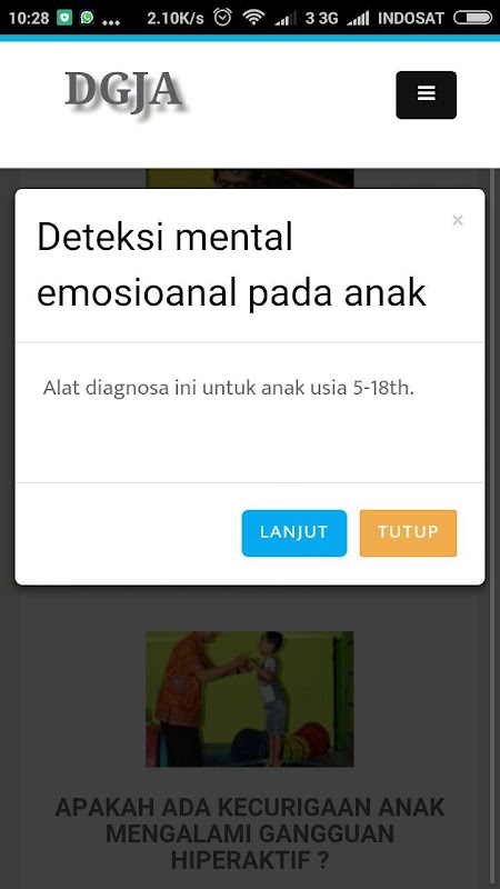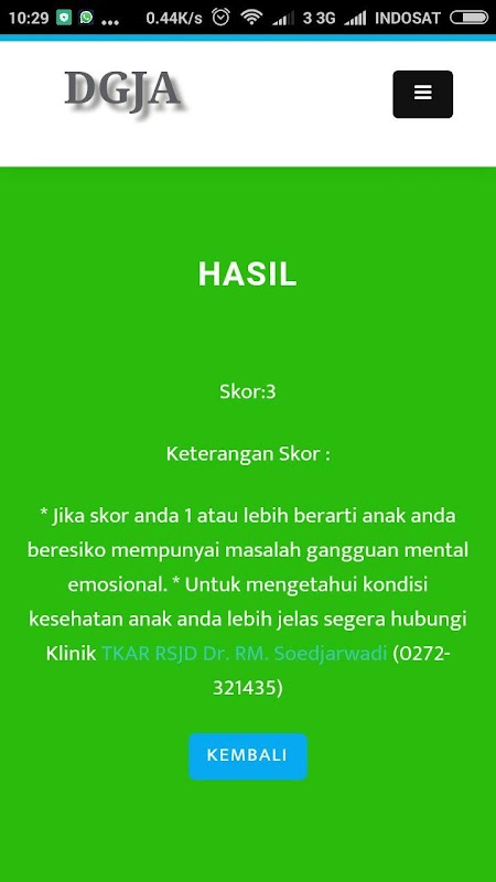 Catatan: ini hanyalah deteksi awal, untuk lebih jelasnya silahkan datang ke RSJD Dr RM Soedjarwadi.