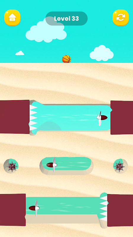 Navigiere den Basketball zum Korb, indem du in Dig and Dunk Pfade in den Sand schneidest