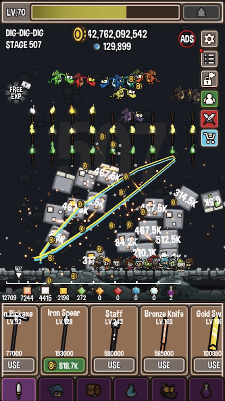 물리 광물 슬라이스 디그디그디그! 지하로 내려갈수록 나오는 다양한 광물을 캐고. 친구놈들을 모아 더 좋은 무기를 얻어보세요!